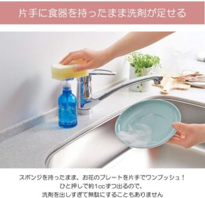 片手でスポンジに洗剤が足せる洗剤ボトルです。